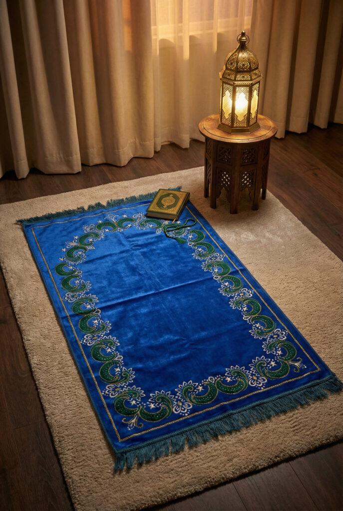 Prayer Mat with blue Mihrab floral pattern
